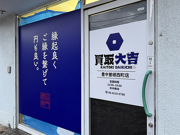 豊中市の曽根駅から徒歩5分程度の場所に、今や飛ぶ鳥を落とす勢いのある、買取大吉 曽根西町店様が出来るとのことで、奈良県の大成ホームテック様からお声がけいただきました。