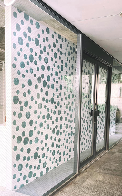 MINT神戸の床に施したように、ギャラリー内の壁面をラッピングしたいとご依頼を受けました。